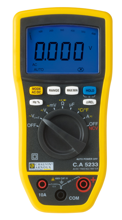 CA5233:n avulla voidaan mitata virran arvo jopa 10 A asti, kapasitanssi sekä lämpötila (K-tyypin anturilla). Laitteessa lisäksi MIN/MAX -toiminto sekä REL-toiminto.