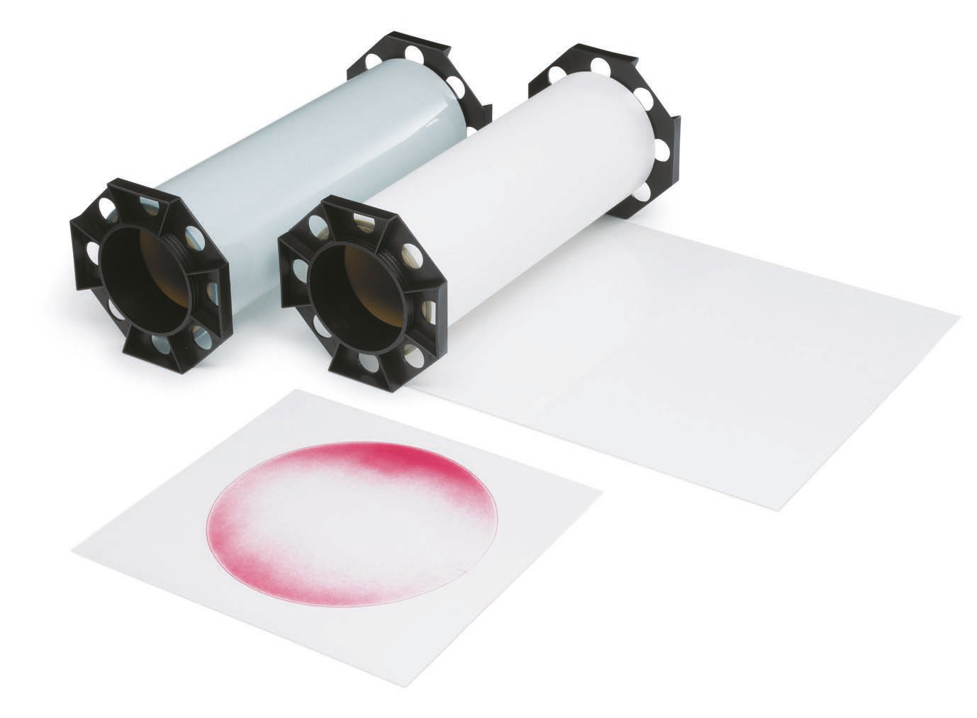 Mittauskalvo omaa 6 eri painealuetta. Leikkaa halutun kokoinen pala rullasta ja aseta tämä tarkasteltavien pintojen väliin. Purista pinnat yhteen ja poista tämän jälkeen mittauskalvo. Paineenjakauma näkyy kalvossa punaisen eri sävyinä.