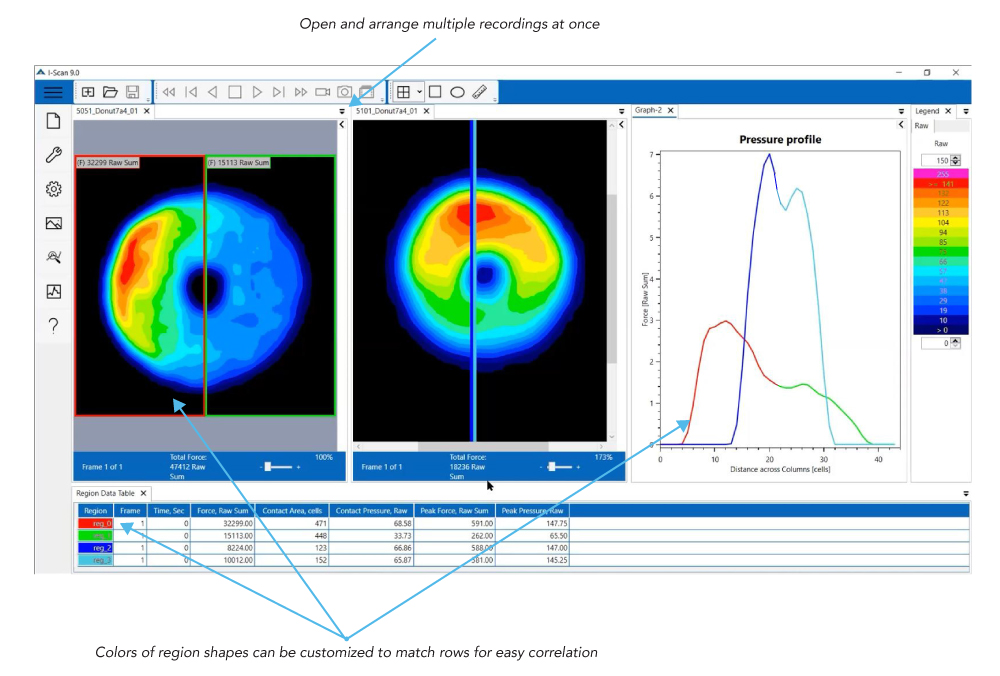 Tekscan I-Scan paineenmittausjärjestelmä on edistynyt mutta kuitenkin erittäin helppokäyttöinen järjestelmä voimaa ja painetta koskevien mittaustietojen tarkasteluun reaaliajassa. Tiedot on mahdollista myös tallentaa, analysoida kuvaajamuodossa tai siirtää ASCII-ohjelmaan.