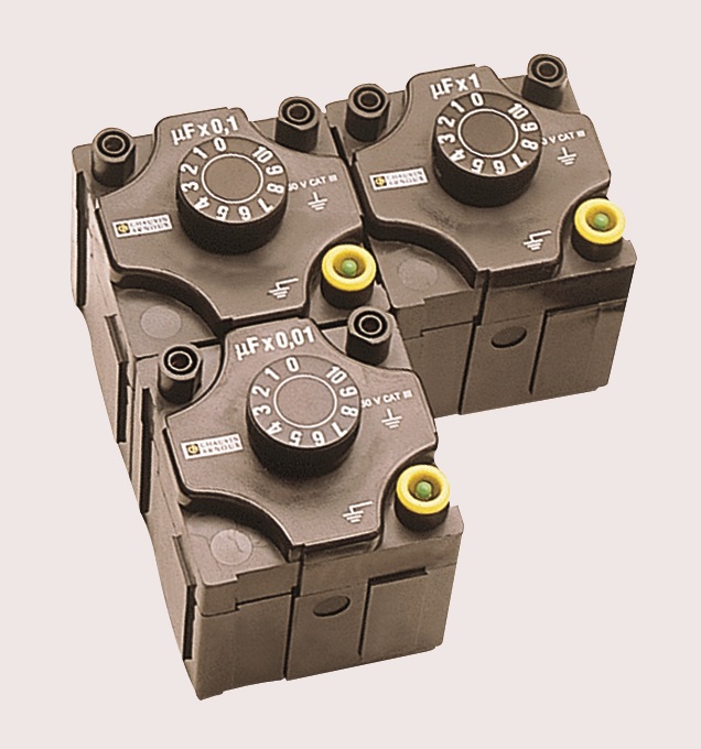 Varustettu maadoituskytkennällä. Kaikki tulot 4 mm:n turvaliitännöillä. Jokaisen dekadin mukana tulee 1 kpl kaapeli 4 mm:n urosliitännällä toiseen dekadiin liitettäväksi.