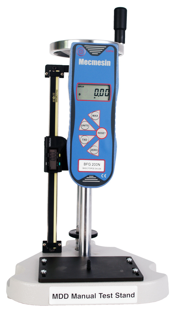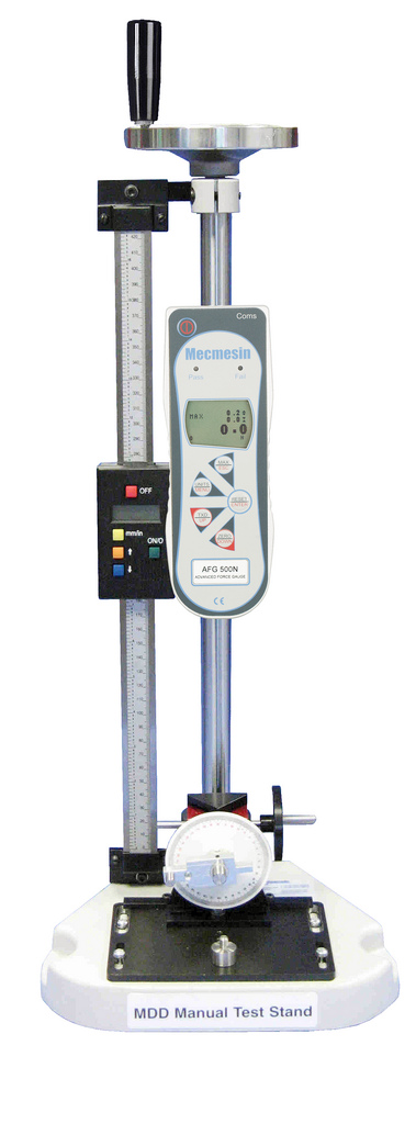 Mecmesin MDD är ett prisvärt provställ som passar för repetitiv tryck- och dragprovning upp till 1000N. Provstället kompletteras med dynamometer, exempelvis CFG+,  BFG, AFG eller en AFTI med extern lastcell.