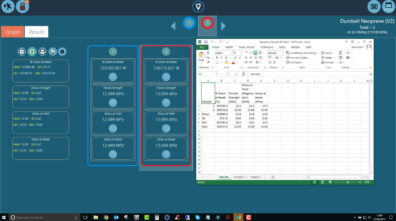 Till OmniTest™ kan man enkelt ansluta extensometer för beräkning av faktisk förlängning av olika materialtyper.