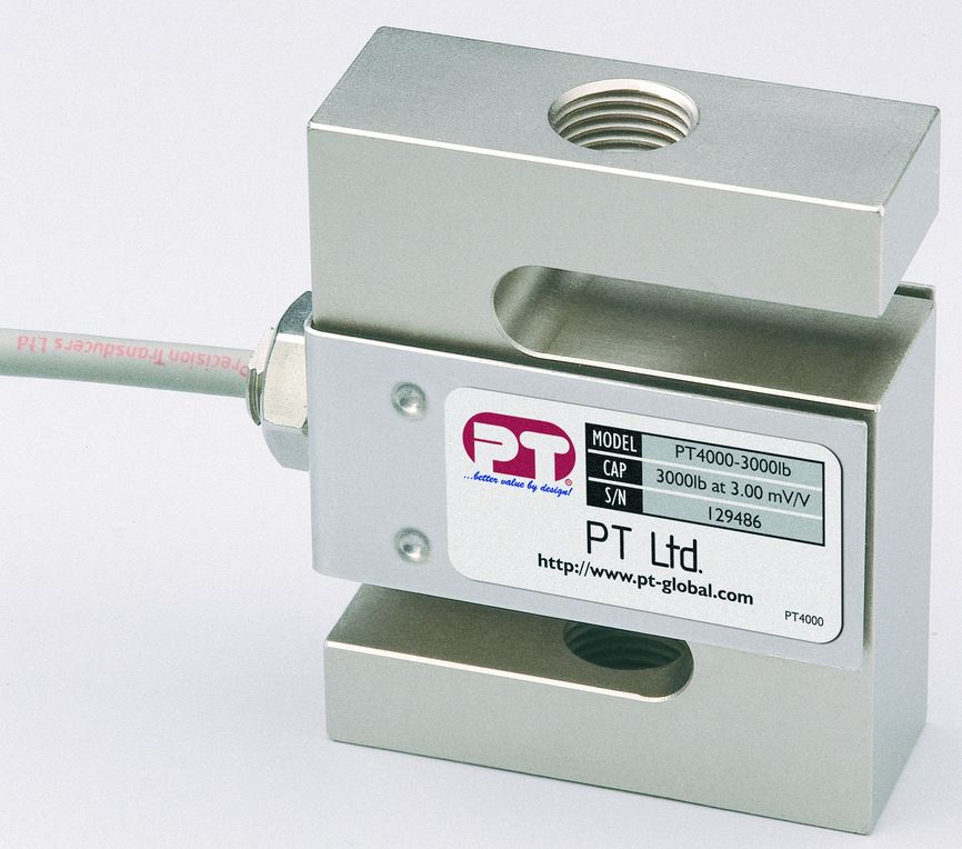 S-formad lastcell PT4000, med maxkapaciteter från 1 ton upp till 10 ton för mätning av tryck och drag. Mätosäkerheten uppgår till 0,03% av kapaciteten. Utsignalen är 3mV/V. Lastcellen tål 150% överlast utan skador och är IP67 klassad.